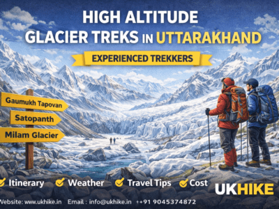 High altitude glacier treks in Uttarakhand : the most thrilling Himalayan adventures for experienced trekkers. These treks take you above 3,500 meters, where you walk on glaciers, cross snowfields, and witness breathtaking peaks. Popular glacier treks like Gaumukh and Satopanth Lake provide a mix of adventure, spirituality, and raw mountain beauty. This guide explains the […]